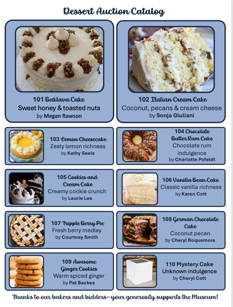 The auction will start off with a selection of delicious desserts! Don’t forget to purchase your ticket either in person or by phone, we hope to see you there!